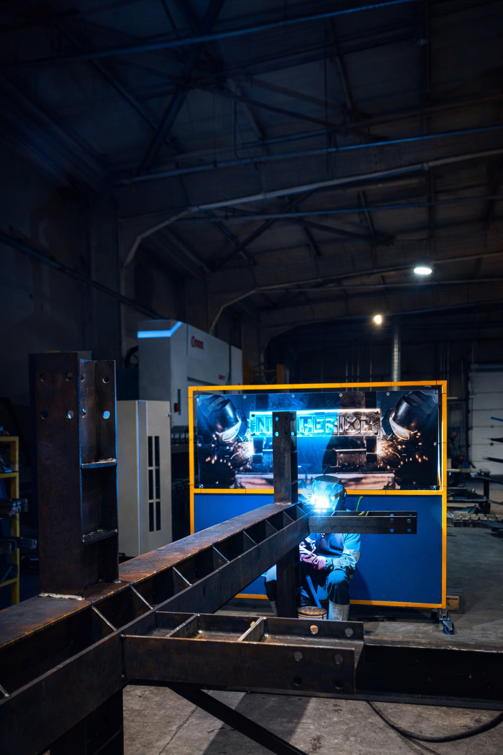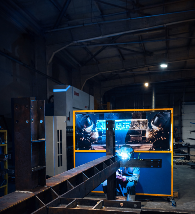 În atelierul nostru realizăm structuri metalice complete, trecând materialele prin toate etapele esențiale ale procesului de producție. Ne ocupăm de pregătirea și verificarea materialelor, curățarea și prelucrarea lor, debitarea și găurirea pieselor, urmate de asamblarea componentelor și sudarea ansamblelor. După verificări, elementele sunt protejate anticoroziv și pregătite pentru livrare în condiții sigure.